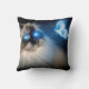 Ragdoll Katze mit blauem Neoplattfliege Kissen