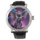 Uhr, Vintage Männeruhr mit schwarzem Lederarmband