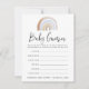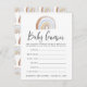 Niedliche Babydusche mit einer Spielkarte mit einem braunen und blauen Wasserfarbenregenbogen oben. Der Begriff "Baby Ratings" wird in einem modernen Kalligraphieskript vorgestellt. Personalisieren Sie Ihre Wünsche mit individuellen Instruktionen, Kriterien und dem Mama-to-be-Namen und dem Baby-Duschdatum. Das Design koordiniert mit unserer Niedlichen und farbenfrohen Wasserfarbenschleife und Kinderkollektion.