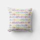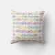 Dieses Kissen weist ein sich wiederholendes Fahrradmuster in Regenbogenfarben auf.