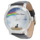 Uhr, Vintage Männeruhr mit schwarzem Lederarmband