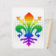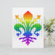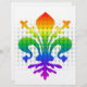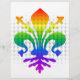 Ein Regenbogen-Fleur-de-lis mit einem Fleur-de-lis-Hintergrundmuster.