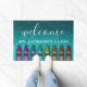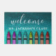 Türkisblaue Imitate Glitzer Hintergrund scheint zu funkeln. Rainbow-farbene Stifte Glitzer in heißen rosa, lila, blau, türkis, grün, gold, orange und rot. Fett weißer Text lautet "willkommen" im Chalkboard-Schriftart. Aktualisieren Sie einfach den Namen des Lehrers oder den Klassentitel. Erhältlich in vielen anderen funkelnd Hintergrundfarben und Designs.