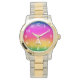 Regenbogen Glitzer Armbanduhr mit Lila, gelbem, grünem Glitzer Hintergrund, Name, Initial, Monogramm. Personalisierter Regenbogen Einhorn Glitzer Texture Armbanduhr. Ändern Sie den Text mit dieser Vorlagenoption | Verwenden Sie CUSTOMIZE WEITERE Option, um den Textstil und die Farbe bei Bedarf zu ändern.