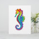 Künstlich gezeichnet, hell, Regenbogen, polygonales Seepferd auf weißem Hintergrund. Helles Tattoo.