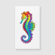 Künstlich gezeichnet, hell, Regenbogen, polygonales Seepferd auf weißem Hintergrund. Helles Tattoo.