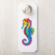 Künstlich gezeichnet, hell, Regenbogen, polygonales Seepferd auf weißem Hintergrund. Helles Tattoo.