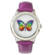 Uhr, Kinderuhr aus Edelstahluhr mit lila Lederarmband