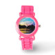 Rainbow-Sonnenuntergang auf dem Bergsee Armbanduhr
