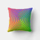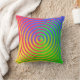 Hier ist ein buntes Kissen mit einem abstrakten Wendelregenbogen, das um ein zentrales Ziel in den Farben Grün, Blau, Gelb, Orange und Rot wirbelt.