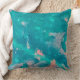 Die abstrakte Originalkunst auf diesem Kissen wurde aus einem Originalfoto von ZoeSPEAK von Regentropfen auf einem Blatt im Garten gemacht. Das Design ist in tropischen Aqua-Blues und Pachelpinken gehalten.