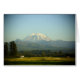 Der Rainier thront über einen malerischen Bauernhof mit Bauernhof und Vieh in der Nähe von Enumclaw, Washington.