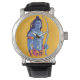Uhr, Vintage Männeruhr mit schwarzem Lederarmband