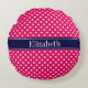 Raspberry White Polka Dots Navy Blue Name Monogram Rundes Kissen