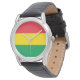 Rasta Farben Gelbe rote Streifen Flag Muster Kronenschutz Schwarzes Leder Watch