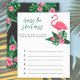 Das Design der Baby-Dusche ist mit rosa Flamingo mit üppig grünen Palmenblättern und tropischen Hibiskus-Blume ausgestattet. "Aloha Baby" Ein tropisches Blumenmuster mit schwarzer Hintergrundfarbe zieht die Rückseite der Karte hoch.