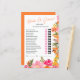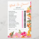Machen Sie Ihrem Brautparty mit dieser "Bride or Groom Guess Who?"-Spielkarte mit einem lebendigen Blumendesign in Aquarellfarben einen besonderen Spaß. Mit einem Mix aus spielerischen und leichteren Fragen wie "Wer hat den ersten Schritt gemacht?" und "Wer ist der bessere Tänzer?" können die Gäste ihre Antworten umrunden und sehen, wer das Paar am besten kennt. Die handbemalten Akzente aus Rosa, Orange und Gelb verleihen dem Ganzen eine lebhafte Touch, die sich perfekt für Duschen mit Boho oder Blumen eignet. Ein großartiger Eisbrecher und Sake für die zukünftige Braut!