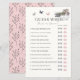 Diese elegante "raten Sie, wer Braut oder Bräutigam?"-Brautparty-Spielkarte bietet einen cremefarbenen Hintergrund mit einem Haufen Bücher, Schmetterlinge, einem Bouquet aus der Blume, Teekanne und Teekanne in Aquarell. Die Rückseite weist einen rosa Hintergrund mit Blumenmuster auf. Personalisieren Sie es für Ihre Bedürfnisse. In meinem Geschäft finden Sie passende Produkte.