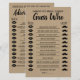 Raten Sie, wer Englisch und Spanisch Version Spiel enthalten (vorne und hinten). Fügen Sie Bride zu Name in die Vorlage für Englisch und Spanisch. Für weitere Anpassungen (andere Formulierungen, Schriftart, Stil des Schriftartes), klicken Sie auf Personalisieren, scrollen Sie nach unten und klicken Sie auf den Link "Klicken Sie auf, um weiter anzupassen". WIE MAN SPIELT: Die Gäste raten, ob die Braut oder der Bräutigam sagte, die Phrasen, die ihre Antwort auf der verlassen Seite für die Braut oder das Recht für den Bräutigam überprüfen. Die Person mit den besten Antworten gewinnt.