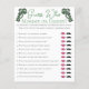 Dieses elegante St Patrick's Day oder Irish Baby Shower Spiel heißt "Guess Who". Das Design: Diese in schwarzer Tinte handgezeichnet Karte mit handgezeichnet, Vintag inspiriert Eckdetails und einem glücklich grünen Kleeblatt, alles auf einem eleganten, weißen Hintergrund. Spielen: Jeder Gast erhält eine Karte und einen Bleistift. Jeder Gast schätzt, welche Antwort Mommy und Daddy gegeben haben und umkreist entweder die Lippen (Mama) oder der Schnurrbart (Daddy) gewinnt. Der Gast mit den korrektesten Antworten gewinnt das Spiel.