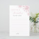 Eine elegante Ratkarte, entworfen in sanften rosa Tönen mit zarten Winterschneeflocken. Gäste können herzliche Ratschläge und Wünsche für das Paar teilen und machen es zu einem bedeutungsvollen Andenken an Ihre Pink Snow in Love Brautparty.