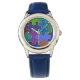Kinderuhr aus Edelstahl mit blauem Lederarmband