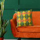 Das Raute Green Gold Orange Kissen wird eine großartige Ergänzung zu Ihrer Einrichtung sein.