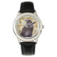Uhr, Vintage Männeruhr mit schwarzem Lederarmband