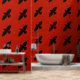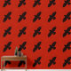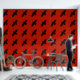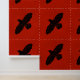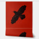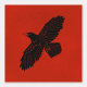 Eine einfache, schwarze Silhouette eines Raven (Corvus corax) auf einem roten, lederfarbenen Hintergrund. Das Rabe-Bild hat einen leichten "rauen" oder "abgenutzten" Effekt.