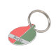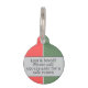 Minimalist design with red and green sides, divided by a light gray line. Coral red and pine green combined with gray text on front and back. Add your pets name on front and your contact detail or text on the back.