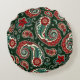 Red and Green Paisley Round Pillow Rundes Kissen