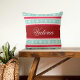Mit diesem festlichen Kissen mit einem Aqua- und Rotweihnachtsmuster und einem maßgeschneiderten Textbereich in der Mitte lassen Sie Ihren Aufenthalt angenehm werden. Dieses einzigartige Design erlaubt es Ihnen, Ihr Kissen mit einer speziellen Nachricht oder einem besonderen Namen zu personalisieren, was es zu einem perfekten Akzent für Ihr Wohnzimmer, Schlafzimmer oder Ansammlungen im Urlaub macht. Die lebhaften Farben und die fröhlichen Muster schaffen eine warme und einladende Atmosphäre, die sich ideal zum Feiern der Saison eignet. Dieses Kissen im Weihnachtsstil vereint Stil und Komfort für einen angenehmen Urlaub und ist perfekt als persönliche Touch für Ihre Zuhause oder als nachdenkliches, individuelles Geschenk geeignet.
