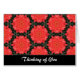 Eine abstrakte Note / Grußkarte Vorlage mit einem attraktiven geometrischen Design basierend auf Blume. Diese Version wurde als "Thinking of You"-Karte angepasst, kann aber für andere Grüße und Anlässe geändert werden. "Denken Sie an Sie" geschrieben auf der Vorder- und Innenseite. (Wenn Sie diese Einstellungen anpassen, vergessen Sie nicht, beide Nachrichten zu ändern).