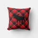 Die Vorderseite dieses Kopfkissens hat ein Schwarz-Silhouette-Bullen-Elch-Bild auf einem hübschen Büffel-Druckmuster in Rot, Schwarz und Weiß. Die Rückseite des Kopfkissens hat das gleiche Muster ohne Elchbild. Ideal für eine Hütte oder eine Zuhause. Dank Ephrazy Design für die Druckgrafik.