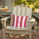 Das perfekte personalisierte Kissen für Ihren Outdoorraum in diesem Sommer.. rote Cabana-Streifen mit Marinemonogramm. Personalisieren Sie mit Ihrem eigenen Initial. Matching Zubehör in unserer Minimal Monogram Cabana Stripe Kollektion erhältlich.