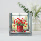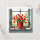 Blumennotecard. Eine wunderschöne ai Aquarell-Illustration von roten Mohn in einem roten Zinn gemalten Kaffee kann an einem Sommertag auf einem Fenstersill sitzen.