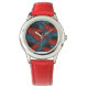 Kinderuhr aus Edelstahl mit rotem Lederarmband