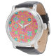 Red Coral Patchwork Quilt Art Blocks Armbanduhr