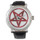 Rot, invertiert, strukturiert Pentagramm im Kreis, auf weißem Hintergrund. Okkultistisches Symbol. 666