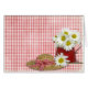 Daisy Bouquet mit Strohhut auf Gingham Hintergrund.