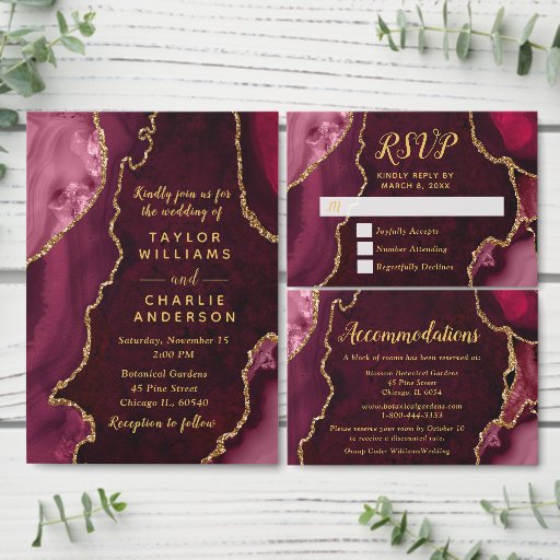 Burgundy Red and Gold Agate Marble WeddingDesignt von Kirsty W