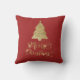 Ein Shiny Kissen mit einem Imitat Gold Foil Weihnachtsbaum auf einem roten Hintergrund mit glücklichen funkelnd Imitaten Gold Typografie "Frohe Weihnachten". Eine elegante und schöne Art, unsere Zuhause mit einem fröhlichen Holiday Thema zu dekorieren.