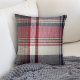Dieses Kissen weist ein kariertes Bild in Rot, Grau und Weiß auf. Beide Seiten des Kissens haben das gleiche Design.