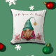 Kissen mit meiner Aquarell-Abbildung eines niedlichen Gnoms und Weihnachtsgrün.