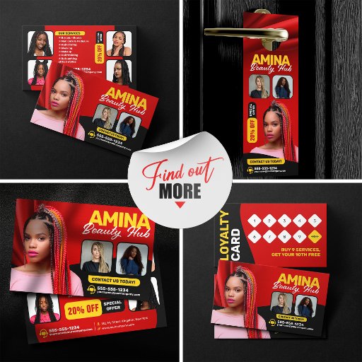 Mit dieser vielseitigen, doppelseitigen Visitenkarte können Sie Ihr gesamtes Angebot an Beauty-Services fördern! Von Braiden über Haarstyling bis hin zu Maniküren, Make-up und vielem mehr, zeigen Sie Ihr Know-how auf der Vorderseite. Auf der Rückseite finden Sie einen anpassbaren Bereich für spezielle Angebote und Kontaktdetails. Bearbeiten Sie den Text und die Fotos einfach. ****HINWEIS: Optimale Ergebnisse durch Verwendung eines PNG-Fotos. Wenn Sie auf Schwierigkeiten stoßen, können Sie sich an mich wenden; ich kann Ihnen helfen, Ihr Foto zu beschneiden und Ihnen eine PNG-Version zur Verfügung zu stellen.****