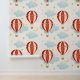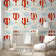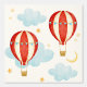 Niedliches Kinderzimmer-Muster mit rot gestreiften Heißluftballons, sanft blauen Wolken und Sternen.