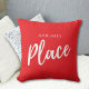Das weiße "Place"-Skript auf einem roten Hintergrund-Design mit individuelle Name, das Sie ganz einfach selbst personalisieren können.