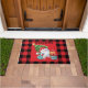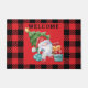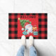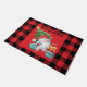 Niedliches Gnome mit Weihnachtsbaum und Geschenkboxen über schwarz und rot Büffel kariert