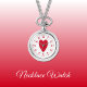 Necklace Watch Geschenk. Mit einer roten Liebe Herz und Uhr Zahlen auf weißem Hintergrund.