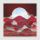 Abstraktes Landschaftsdesign in verschiedenen Rottönen mit einem Mondschein, Hügeln, Bäumen, Wolken und Vögeln.